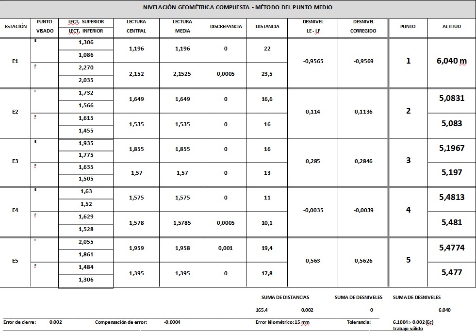 Cálculo de coordenadas, distancias, ángulos, cotas, inclinaciones y otros parámetros complementarios.