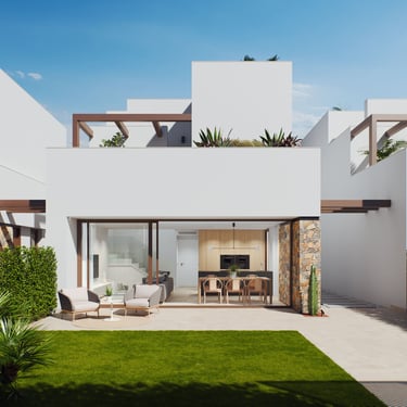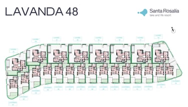 Villas Lavanda 48: Located in one of the most privileged areas of the resort, just steps away from the spectacular lagoon, the Lavanda Villas combine elegance, functionality and a south orientation that maximises natural light throughout the day. Available in 2 or 3 bedroom versions with 2 bathrooms, these villas also offer the possibility of enjoying a private swimming pool and rooftop solarium, to elevate the Mediterranean lifestyle to the maximum.